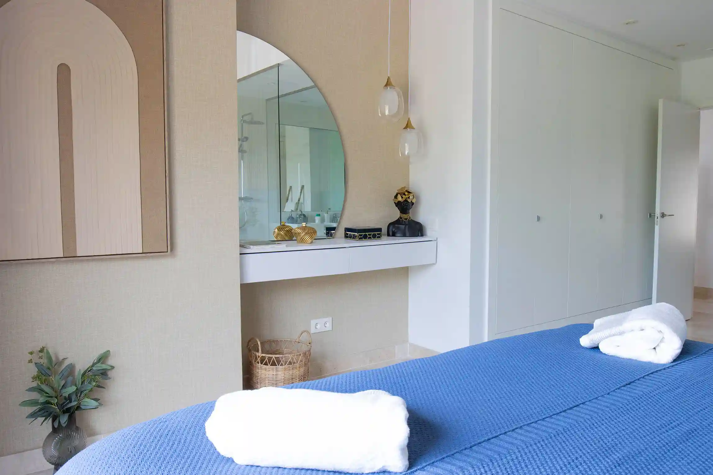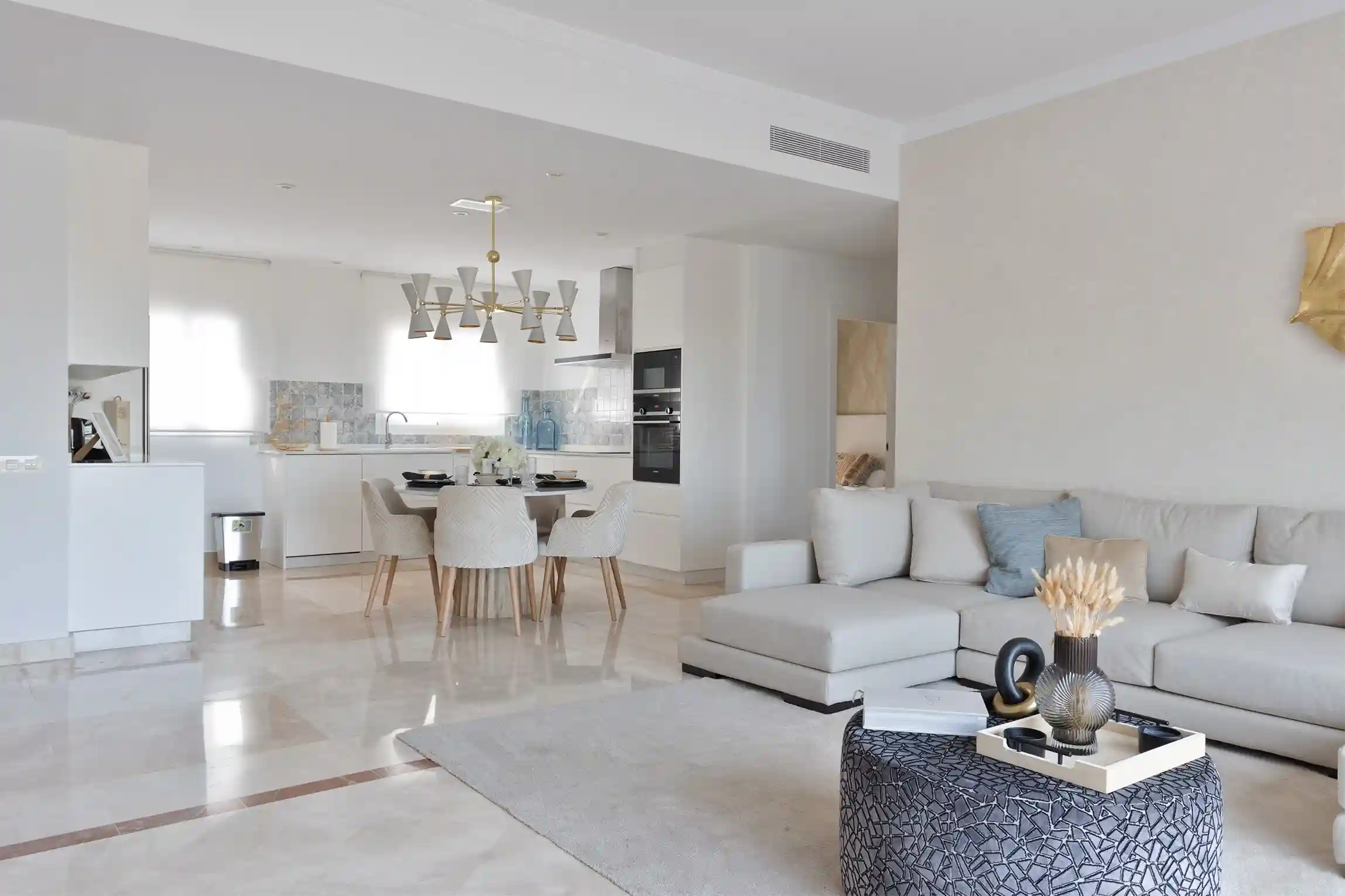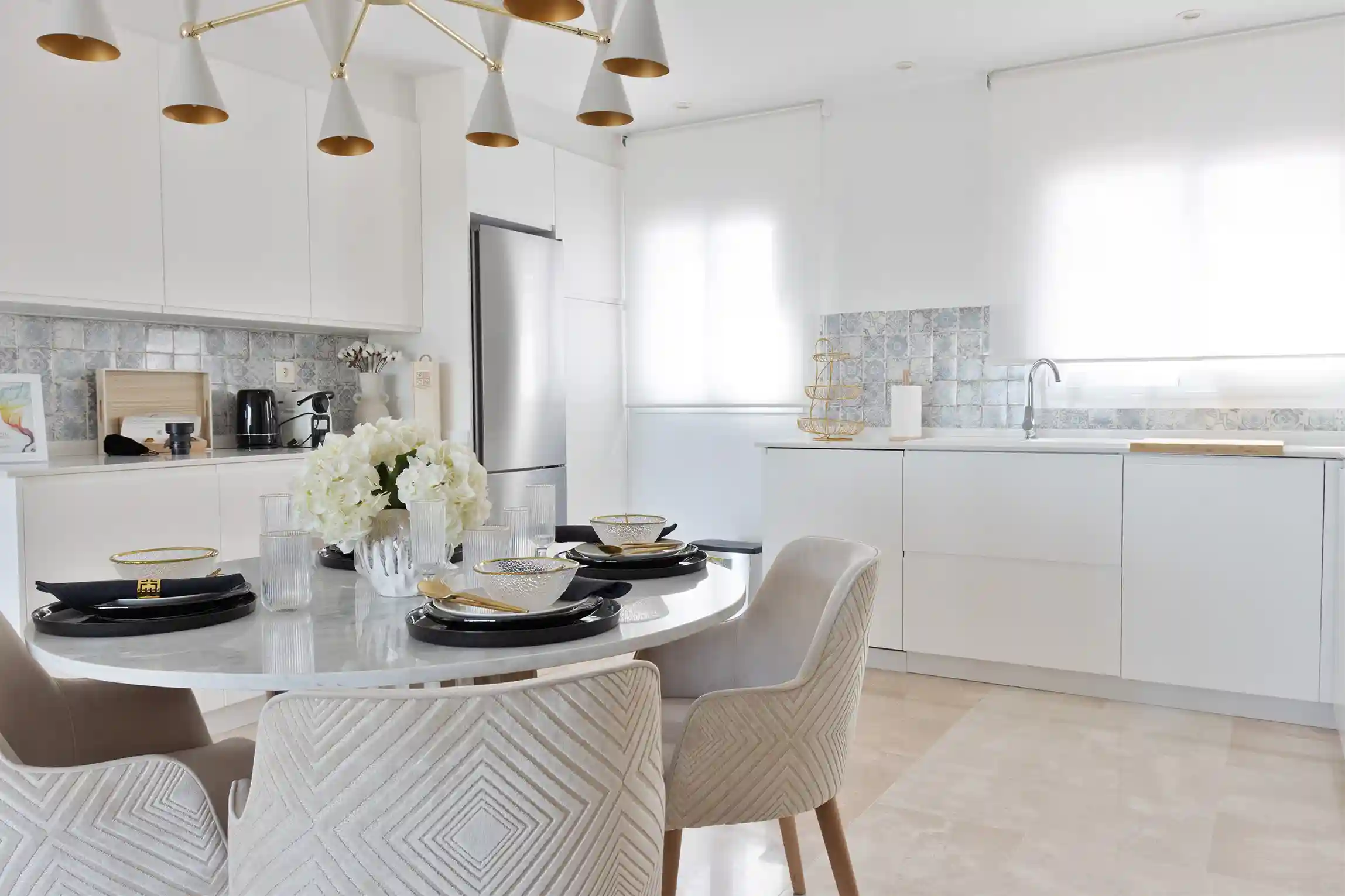 In the heart of Málaga, we transformed a stunning frontline city-center apartment with our furniture package. This 3-bedroom property underwent a full refurbishment, using premium-quality materials and a mix of tailored and in-stock products. The project, completed within just two weeks, became our top priority to meet the clients’ urgent needs.