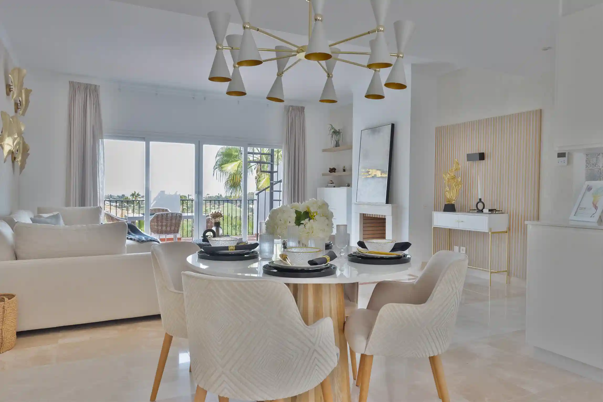 Nestled among serene golf courses, we completed a key-ready project for a luxurious duplex penthouse. Featuring Italian furniture, curated art pieces, and thoughtful decorations, this package was designed for seamless short-term rental preparation, combining elegance and functionality.